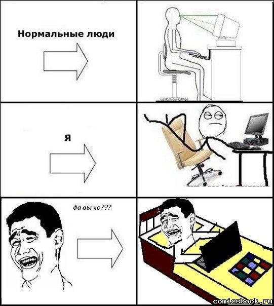 Если вы сидите так, как показано на 1 картинке, то вы нормальный человек. Если вы сидите так, как показано на картинке 2 - вы Максим. А если вы лежите так, как показано на картинке 3, то вы Босс-Админ этого сайта.